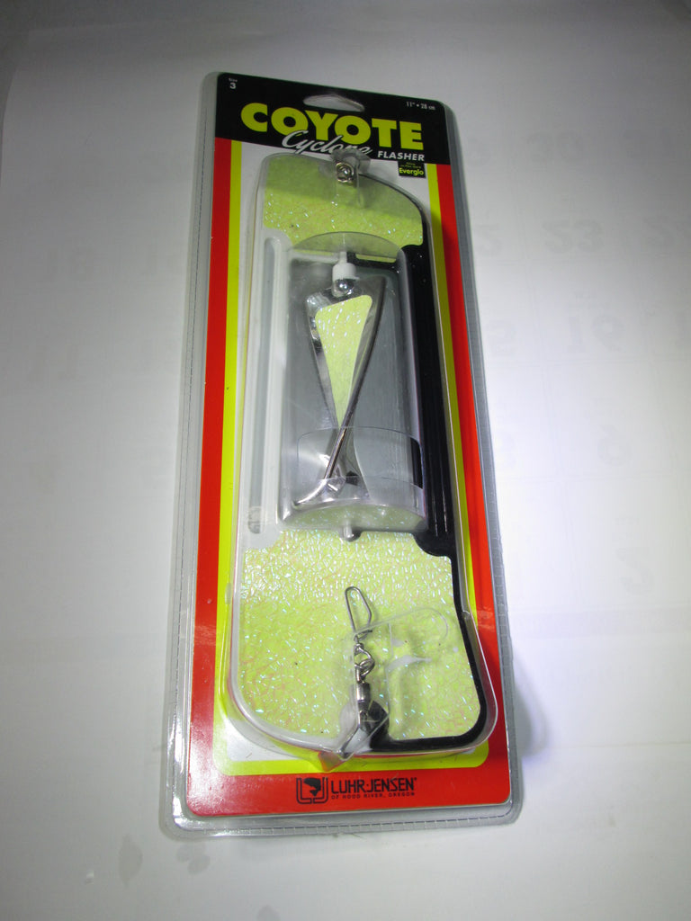 LUHR-JENSEN Coyote Cyclone Flasher 11"-Cop Car Crack Glow Moon Jelly